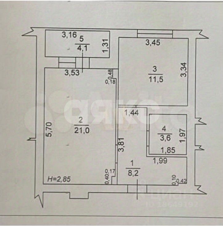 Общая площадь 50кв.м -Кухня 14,1 кв.м -Комната 18,4 кв.м -Совмещённый санузел 3,9 кв.м - Прихожая 9,2 кв.м -Балкон 5,4 кв.м