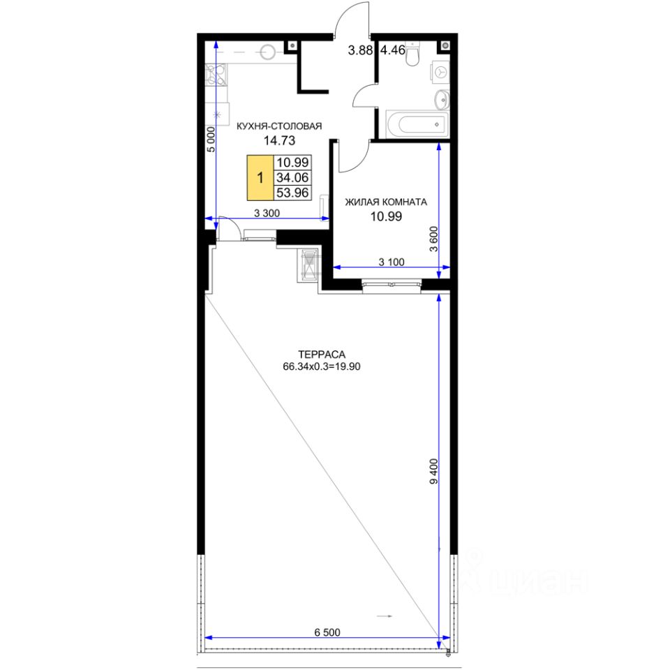 продам 1-к, Воронежская, 47/3915 648 400 ₽