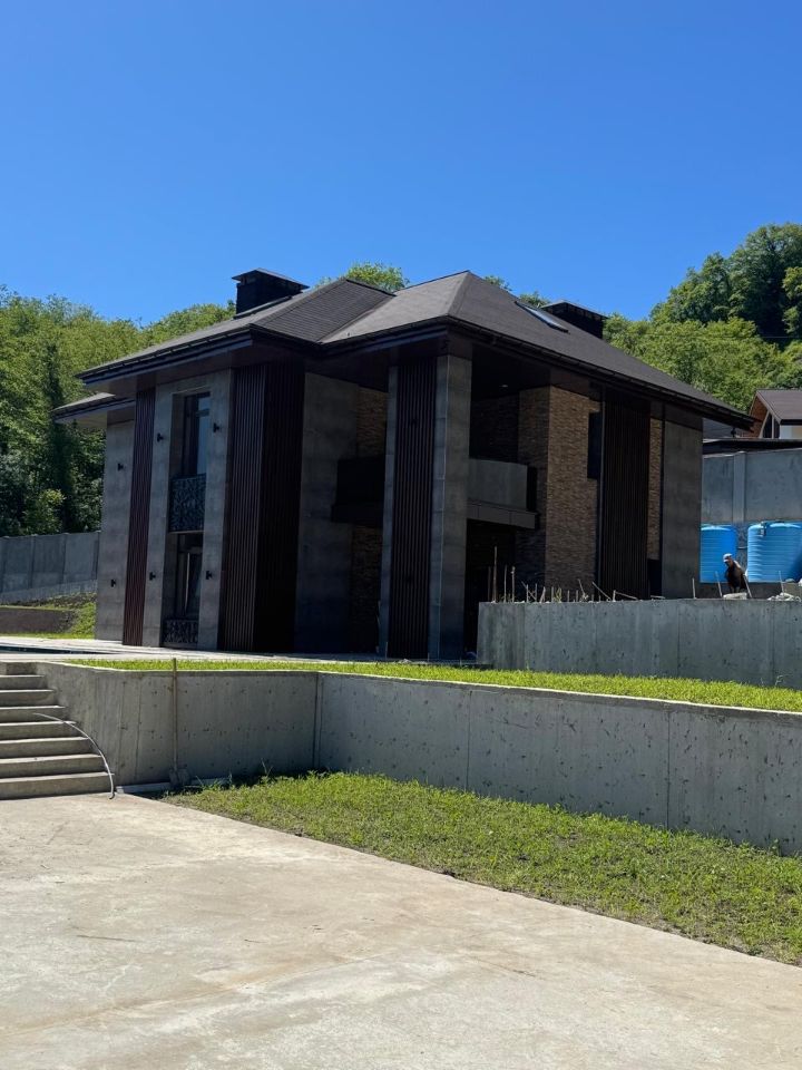 Один из престижных районов Сочи. Поселок расположен а долине реки Мацеста. Прекрасный тихий район , вдали от городского шума. Развитая инфраструктура. Предлагается к продаже новый дом, на большом земельном участке. Дом и участок оформлен в собственность . Дом подготовлен к финишной отделке. Участок 15 соток, сейчас в стадии оформления еще 2 сотки. Дом построен из бетона с блоками . Наружная отделка дома - кирпич, керамогранит, алюминиевые ламели. Бассейн 13х6 м. Газ подведен к участку. Канализация септик. Электричество 15 кВт . Водоснабжение - 2 скважины. Полы с водяным подогревом. Имеется цокольный этаж . 1 этаж : Гостиная, кухня-столовая , котельная, с/узел. 2 этаж: Три спальные комнаты, гардероб, ванная комната, с/узел.