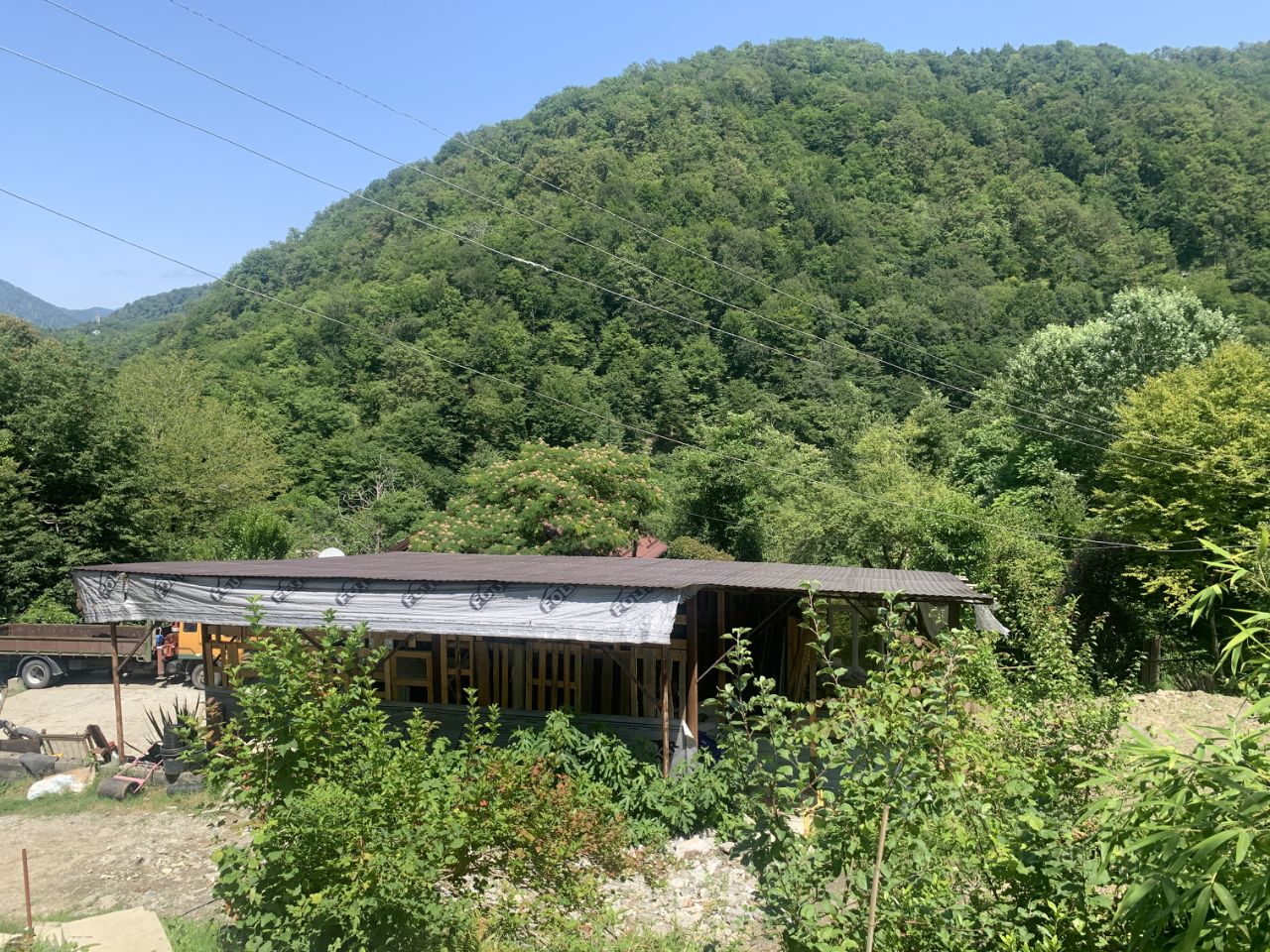 В 7 минутах ходьбы река Сочи, супермаркет Магнит, автобусная остановка Мост. Вокруг прекрасный вид на горы. До центра Города 20 минут на машине, до моря 25 мин.