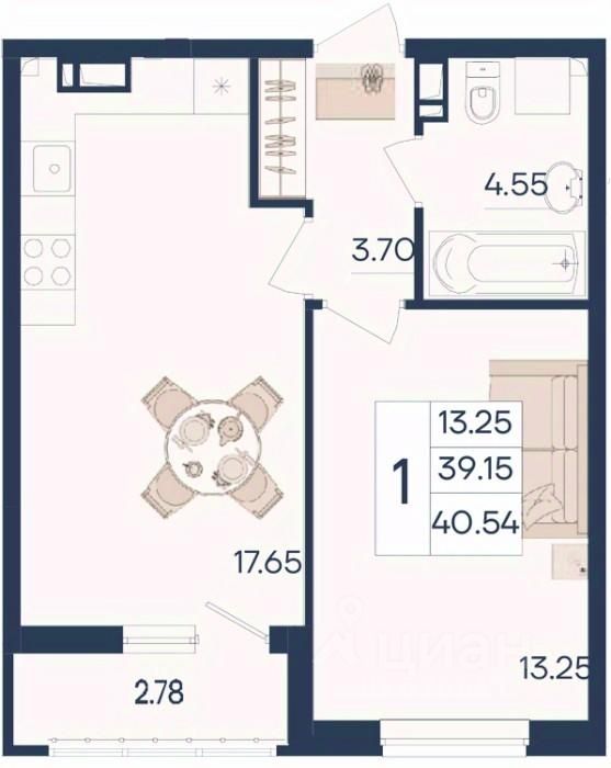 1 комнатная квартира с ремонтом 40.54 м², на 4 этаже в жилом комплексе ''Дом 101''.