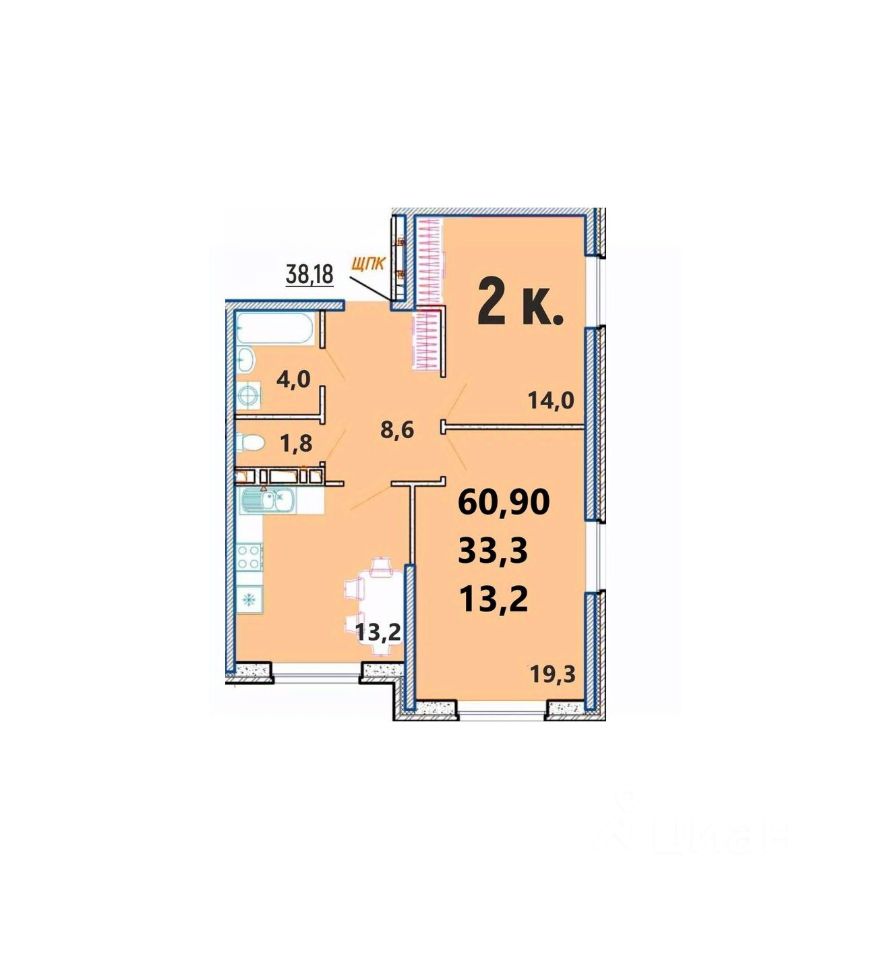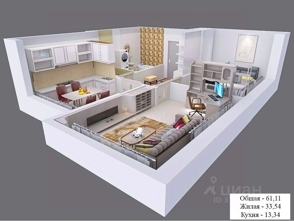 Общая площадь60,9 м2