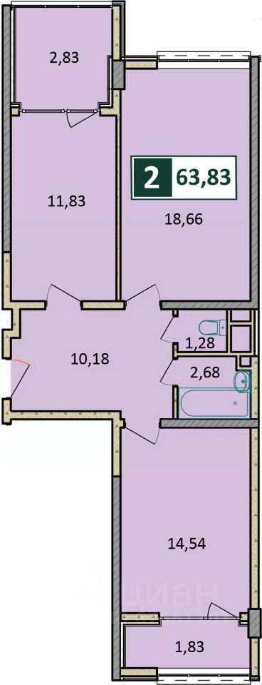 Общая площадь63,83 м2