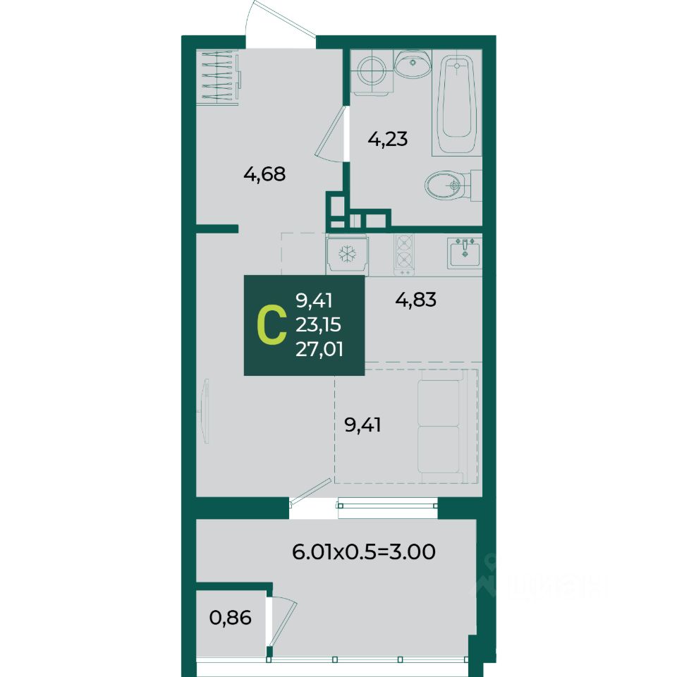 Общая площадь27,01 м2