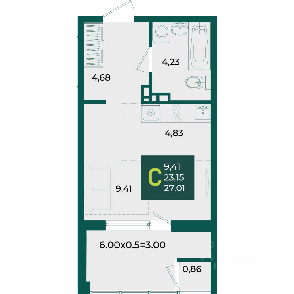 Общая площадь27,01 м2