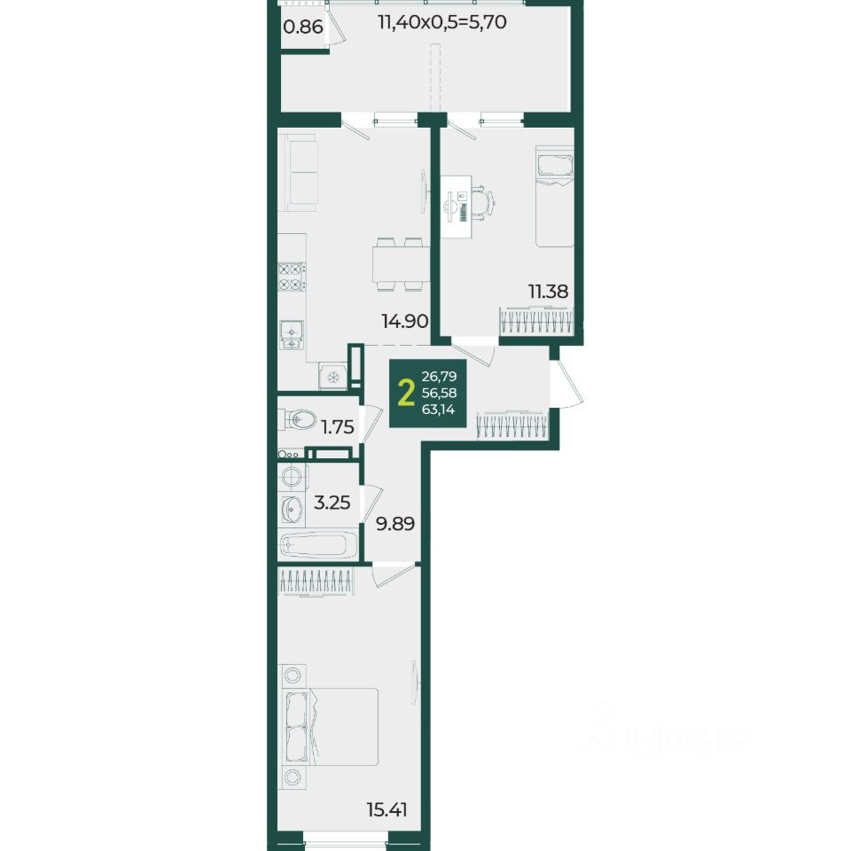 Общая площадь63,14 м2