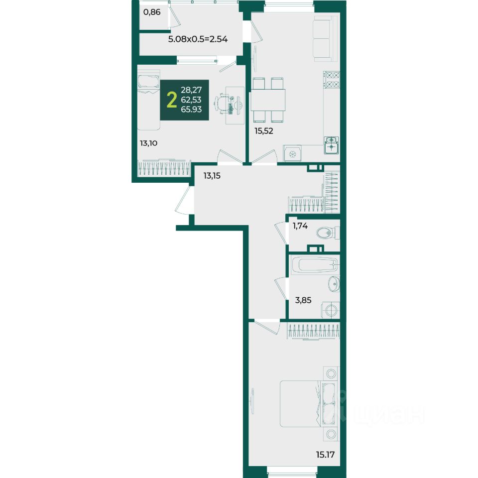 Общая площадь65,93 м2