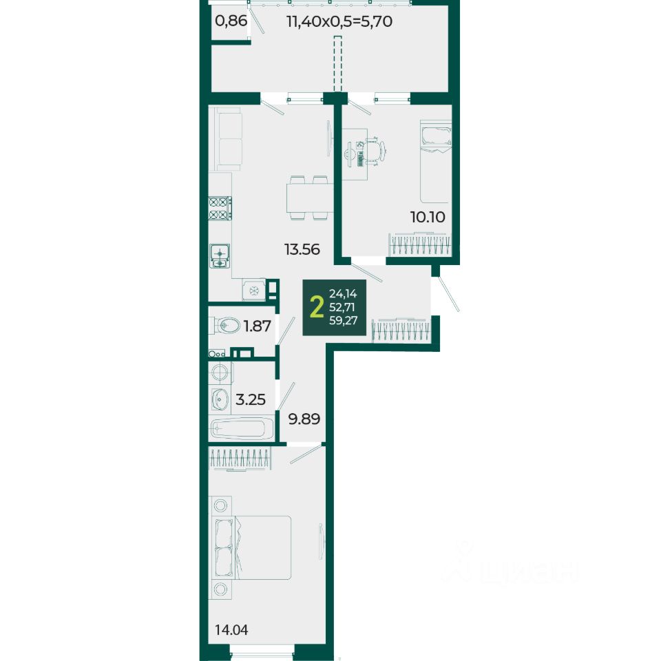 Общая площадь59,27 м2
