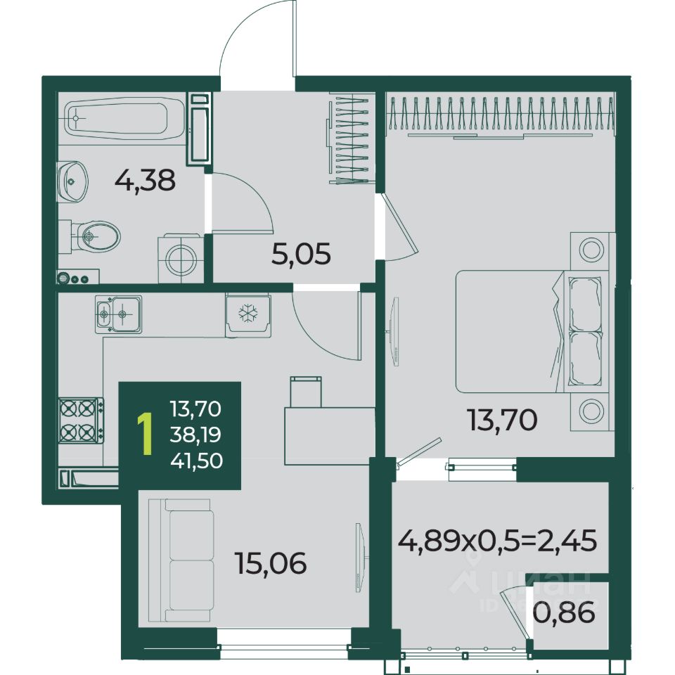 Общая площадь41,5 м2