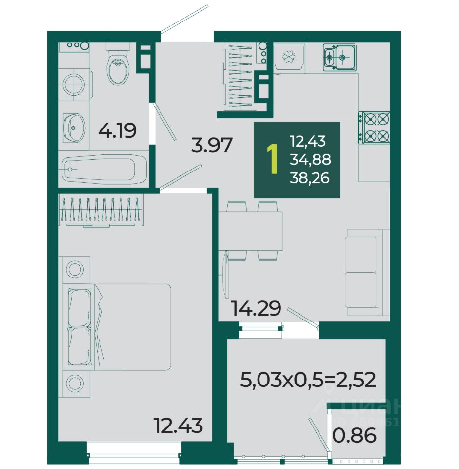 Общая площадь38,26 м2