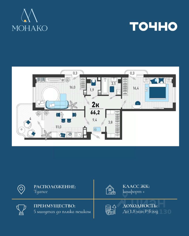 продам 2-к, Конечная, 414 200 000 ₽
