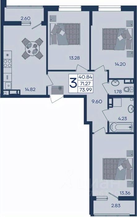 3 комнатная квартира с ремонтом 73.99 м², на 5 этаже в жилом комплексе ''Дом 101''.