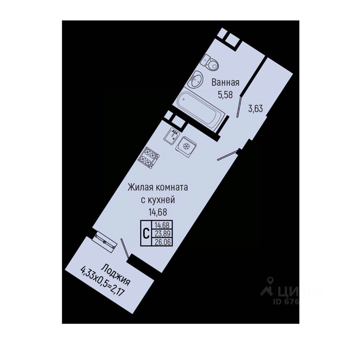Общая площадь26,06 м2