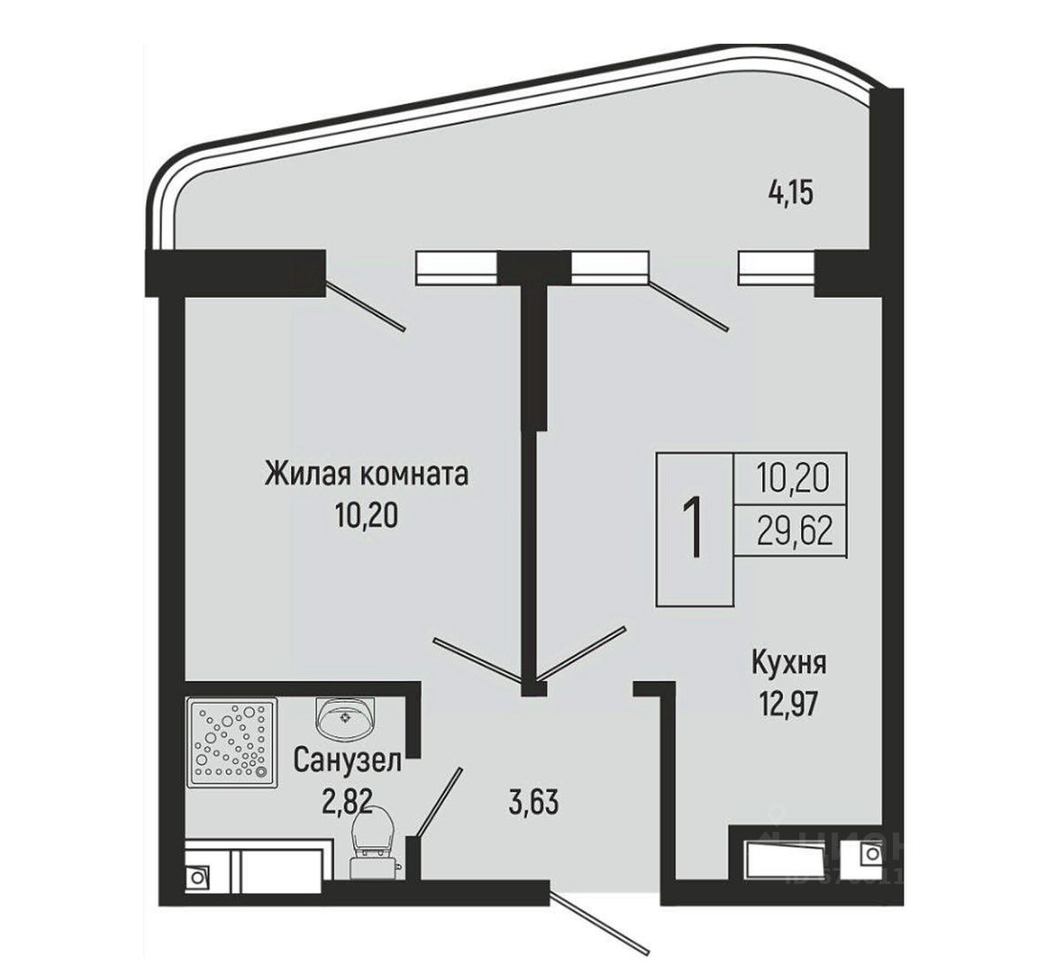 Общая площадь33,85 м2