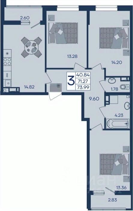 3 комнатная квартира с ремонтом 73.91 м², на 6 этаже в жилом комплексе ''Дом 101''.