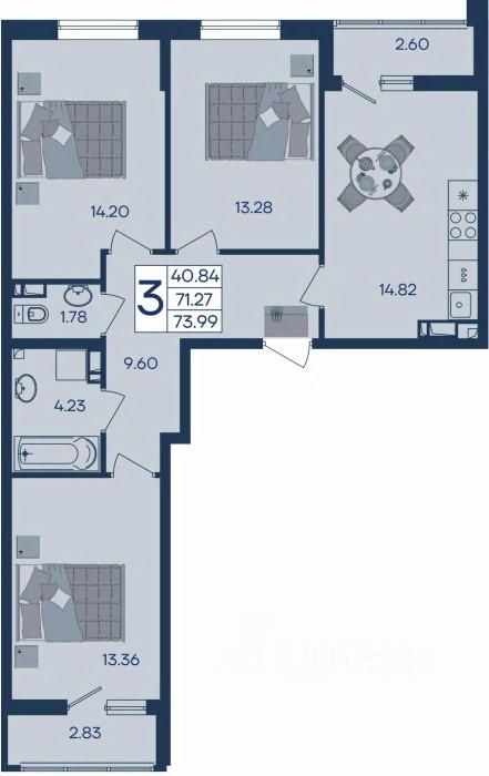 3 комнатная квартира с ремонтом 73.91 м², на 8 этаже в жилом комплексе ''Дом 101''.