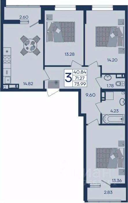 3 комнатная квартира с ремонтом 73.91 м², на 9 этаже в жилом комплексе ''Дом 101''.