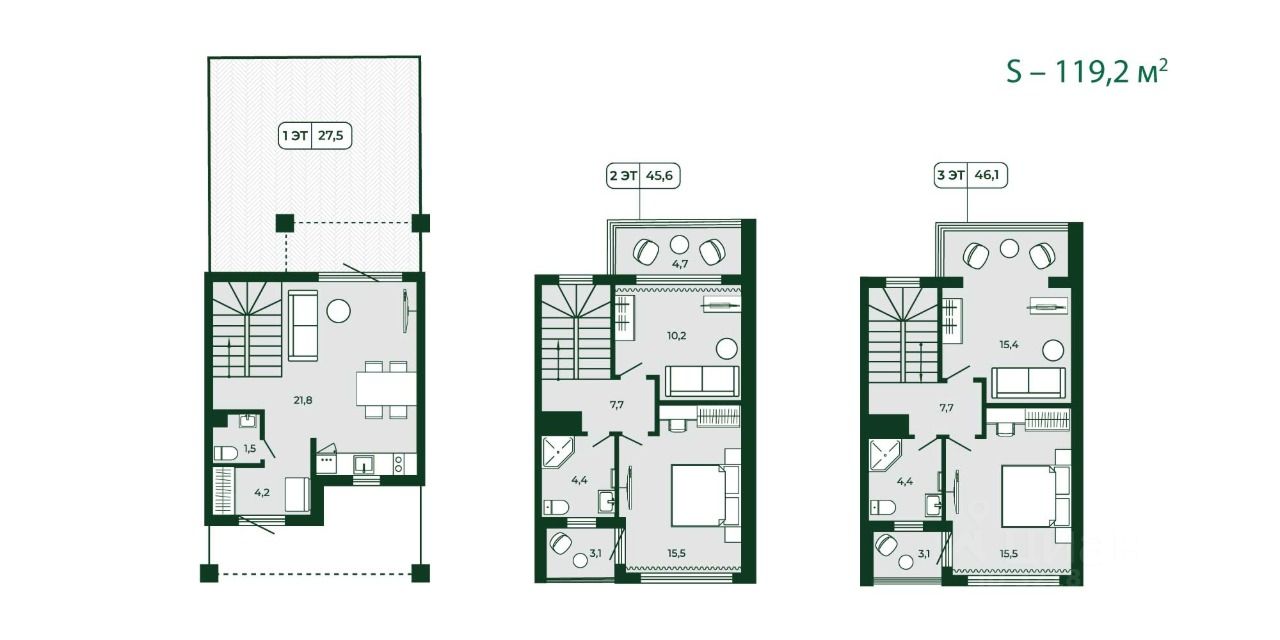 Цена за м2 , 292 тыс./кв.м. Площадь таунхауса 119,2 м2 общая стоимость 34 800 000 руб, у застройщика минимальная цена 41 500 000 руб !!!