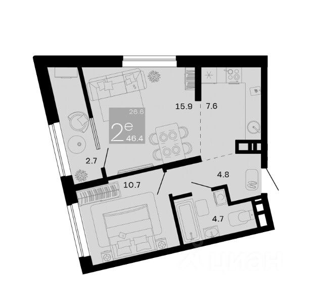 Общая площадь46,4 м2