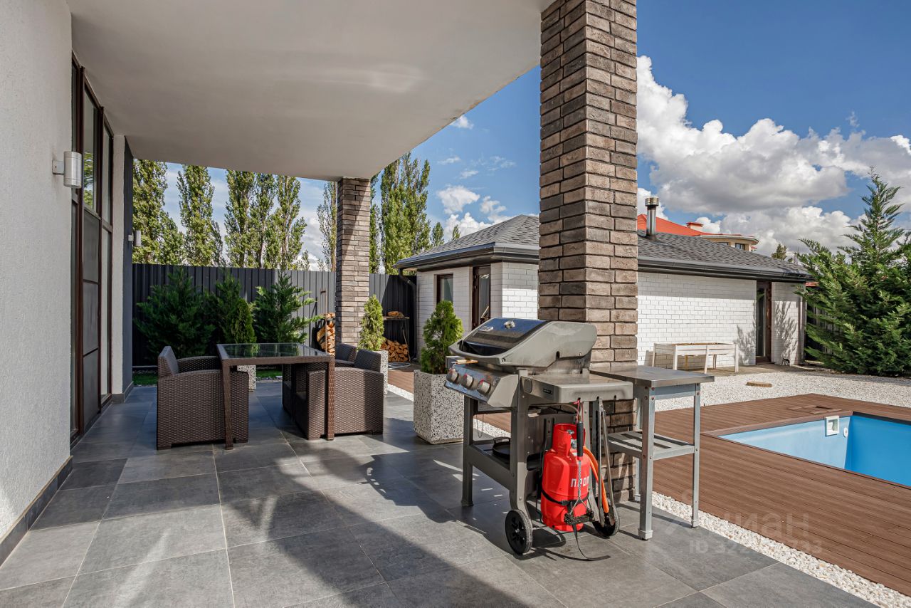 Продается дизайнерский, трёхэтажный дом в районе Немецкая Деревня. Хорошо развитая инфраструктура, безопасный и удобный район. В шаговой доступности: муниципальный сад 64, 3 частных д/сада, школа 99, частная школа Центр роста. Город спорта со спорткомплексами федерального уровня в 15 мин на машине. В центр Краснодара - каждые 10 мин ходят автобусы и маршрутки. Так же есть клиника Амадеус в центре Немецкой деревни и клиника Екатерининская на машине 15 мин.При строительстве дома использовались современные материалы (имеется фото всех этапов строительства). Дом построен на свайно-ростверковом основании, сверху армированная плита, стены утеплены пеноплексом. Все коммуникации находятся под землей, в том числе и газ.Выполнен качественный, дизайнерский ремонт, весь дом в едином стиле, смотрится гармонично и красиво. На первом этаже: просторная прихожая, кухня-гостиная с выходом на террасу (остается кухня фирмы Мария с гарантией 25 лет, столешница из искусственного камня, и техникой Bosh), прачечная, с/узел, гостевая комната с выходом на террасу. На втором этаже: большой с/узел, спальня с выходом на балкон, тренажерный зал. На третьем этаже: большой с/узел, комната для игр (сейчас стоит теннисный стол, но можно поставить и бильярд) с выходом на балкон, две спальни, одна из них имеет выход на балкон. Террасы и балконы площадью 120 м2 с ограждением из стекла и нержавеющей стали. Зал со вторым светом, высота потолка 7 метров с 6 панорамными окнами. Окна в доме трехкамерные и энергосберегающие. Котел фирмы Buderus, циркуляционные насосы фирмы Grandfos, трубы фирмы Stout. Вода - скважина с колонной системой фильтрации в дом и на полив участка (на воду имеются анализы соответствия). Смесители фирмы grohe и hansgrohe с терморегуляторами, во всем доме 2 контура отопления, тёплые полы, батареи с регулятором температуры. Кондиционеры установлены во всех комнатах, так же в каждой комнате установлена приточка воздуха бризеры Ballu. По периметру автоматическое освещение, видео наблюдение, система охраны дома. На участке высажено 36 купрессоцепариса высотой более 3 метров (быстро растут и становятся живой изгородью), голубая ель высотой 5 метров, плодовые деревья с системой автополива. Бассейн размер 6 х 3 с системой подогрева, фильтрации и автоматической дозировки химии, с подсветкой 7 цветов. Отдельно стоящая баня 30 м2, котел на дровах фирмы Harvia. Гараж 6 х 4 и навес 6 х 4 с автоматическими роллворотами фирмы Alutech.