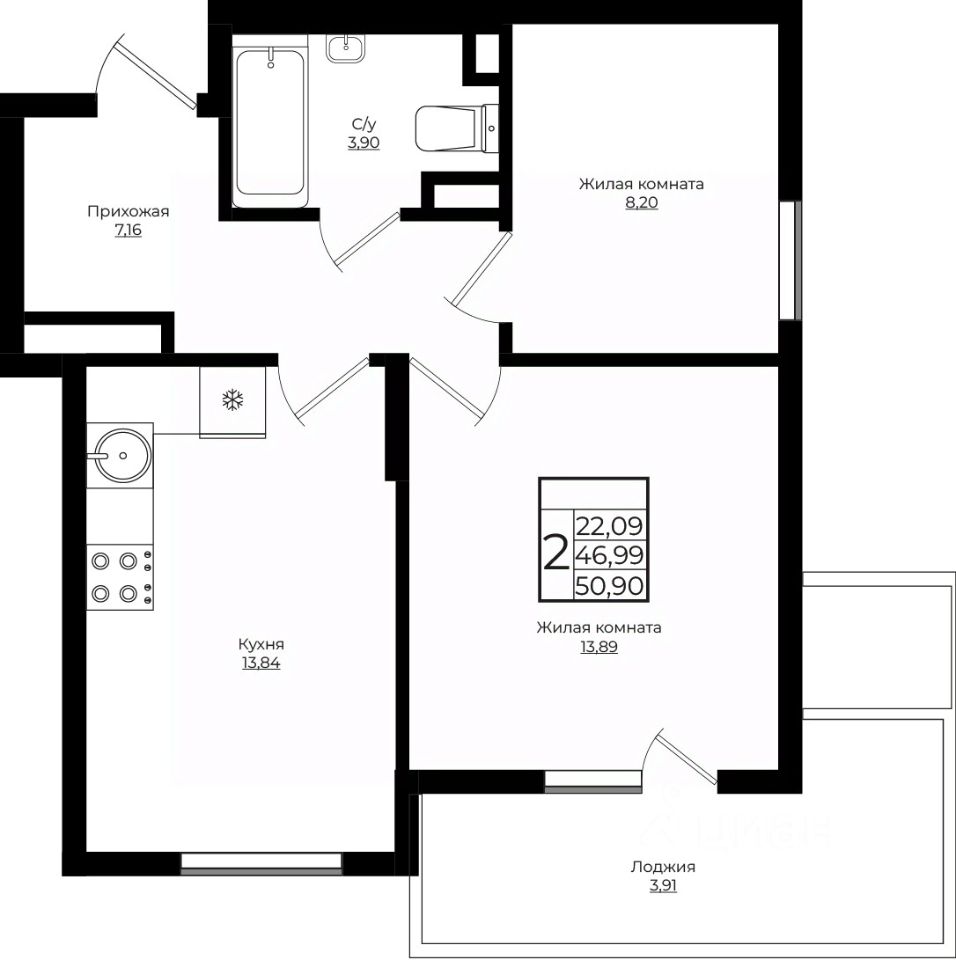 Жилая площадь22,1 м2