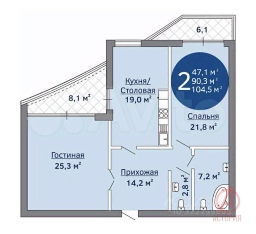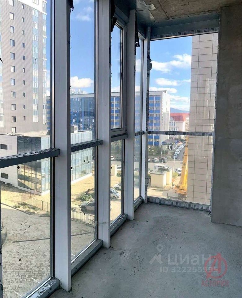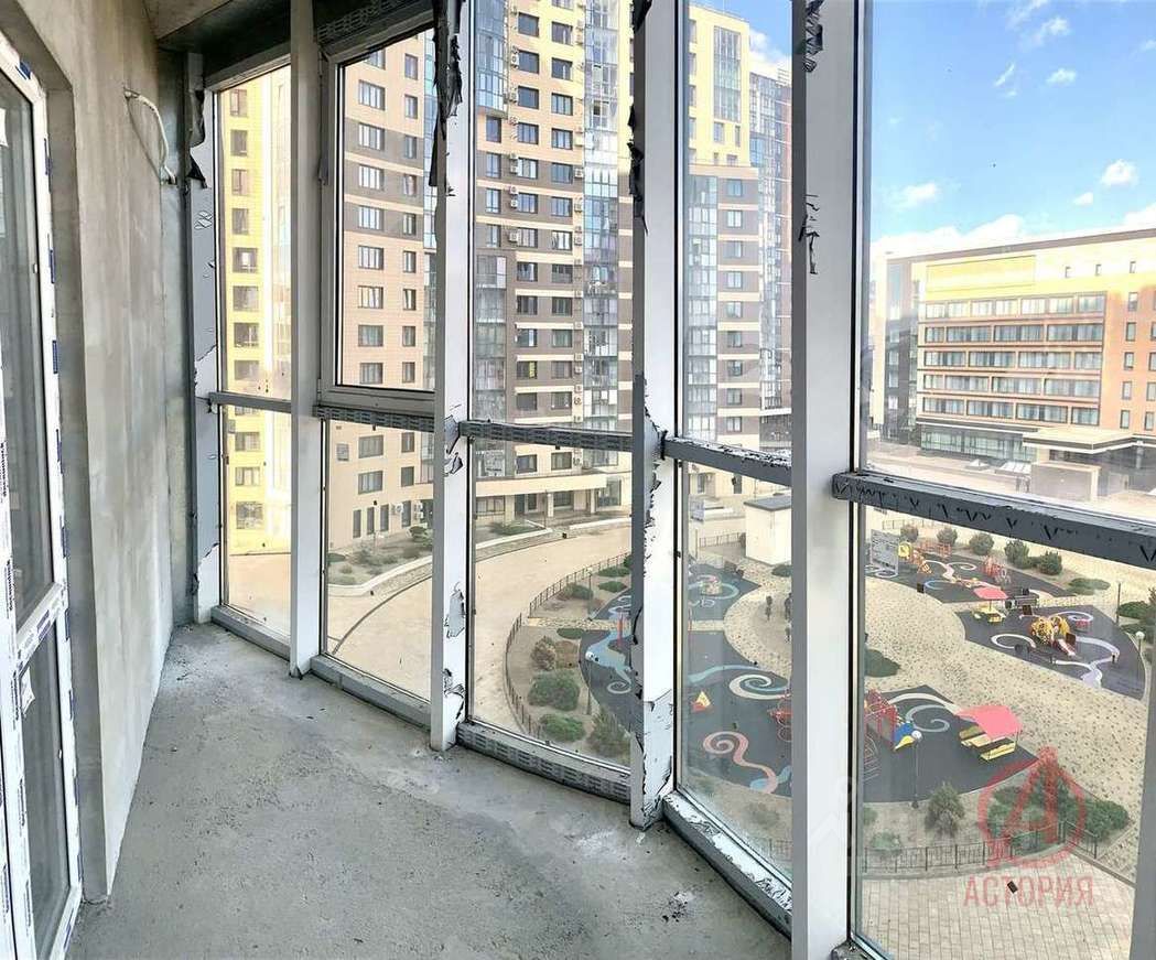 Квартира расположена на 6-ом этаже 18-этажного дома. Общей площадью - 104.5 м2, жилая - 47.1 м2, кухня-гостиная - 19 м2. Две лоджии с панорамным остеклением и видом на море.