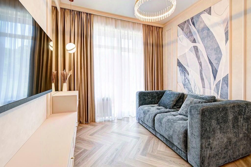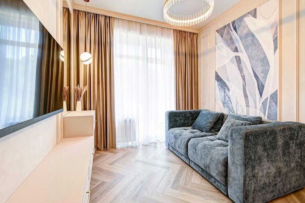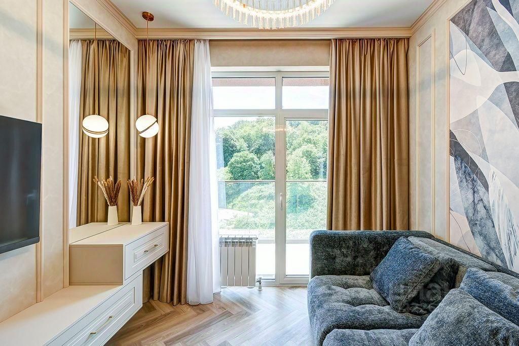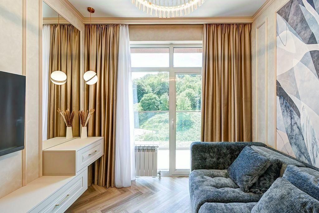 Просторная 2-комнатная квартира площадью 76 м² в жилом комплексе Аллея Парк, находящаяся на 7 этаже 20-этажного дома. Идеальный вариант для комфортной жизни или отдыха в Сочи. Квартира выполнена в современном дизайне с новой отделкой и полной мебельной комплектацией. Планировка формата евро-3 позволяет эффективно использовать пространство: отдельно выделенная зона гостиной, кухня и две спальные зоны.