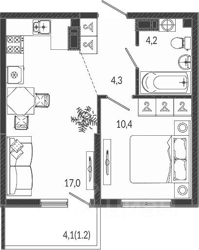 Жилая площадь10,4 м2