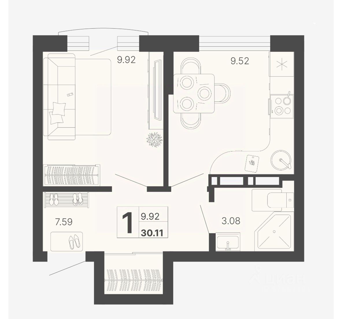 Общая площадь30,11 м2