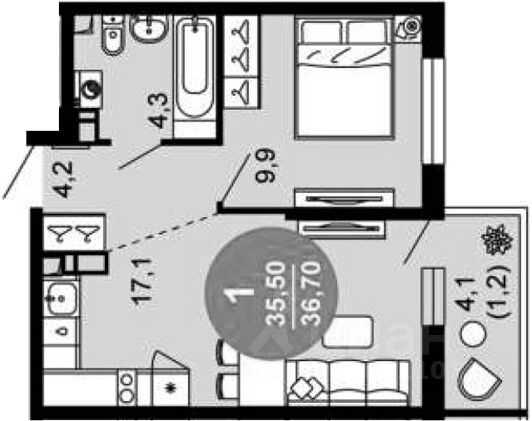 Общая площадь36,7 м2