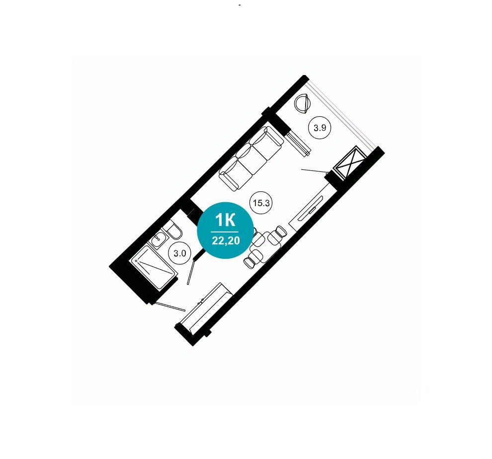 Общая площадь22,2 м2