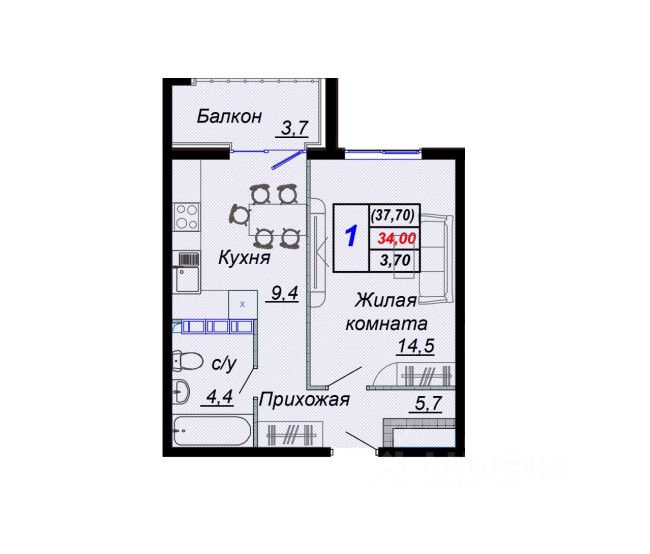 Общая площадь37,7 м2