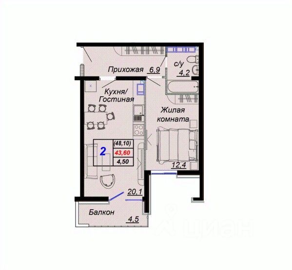 Общая площадь48,1 м2