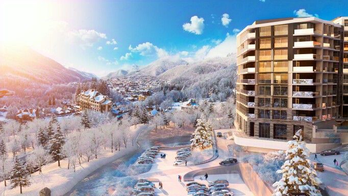 Превосходная отельная инфраструктура : спа-комплекс с внутренним бассейном, фитнес-зал, ски-рум, магазины, рестораны, открытый 25-метровый плавательный бассейн.