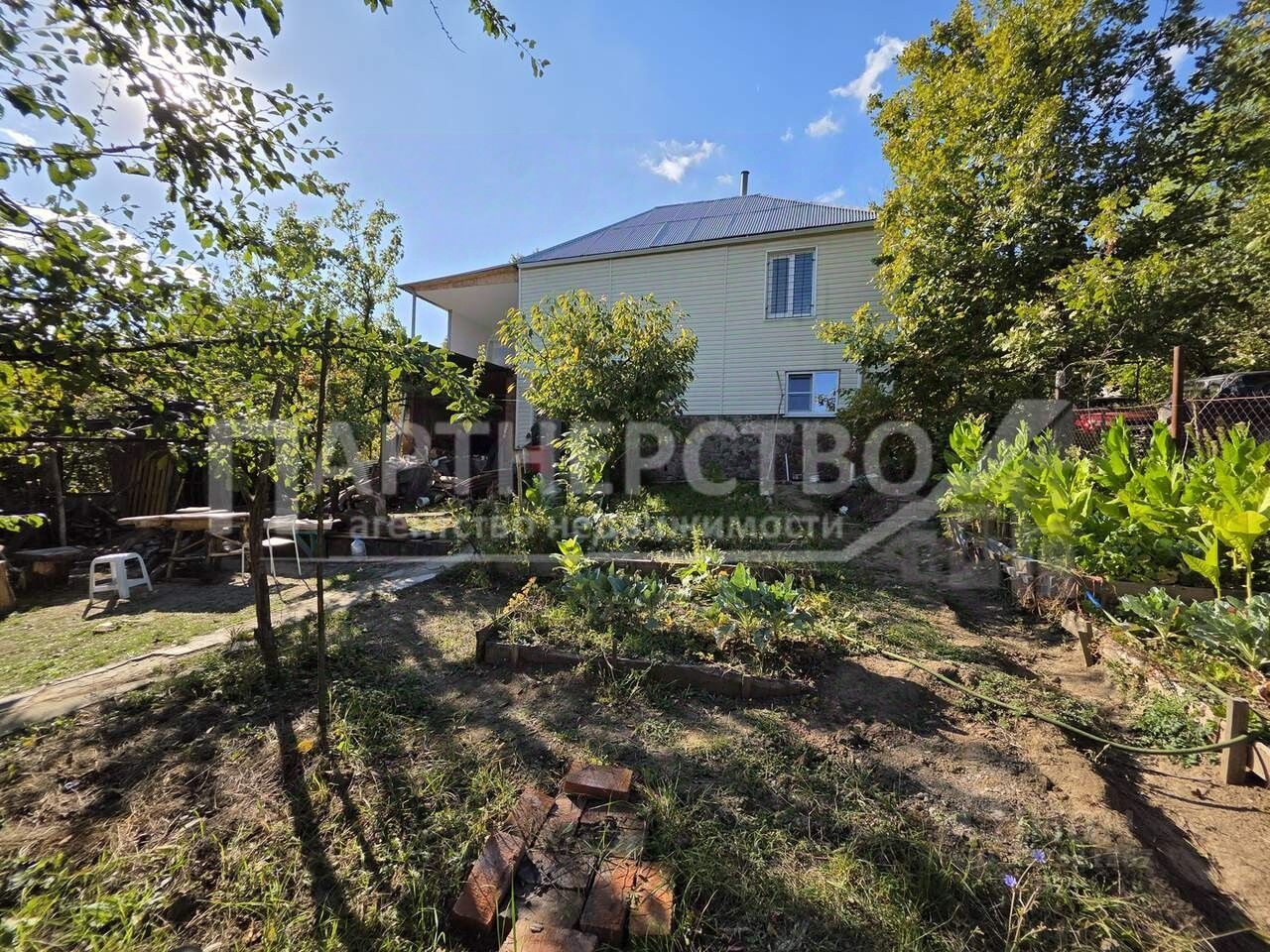 На улице большой навес, фруктовый сад. ,своя скважина 45м, плюс есть колодец на 25м (вода всегда будет на участке).