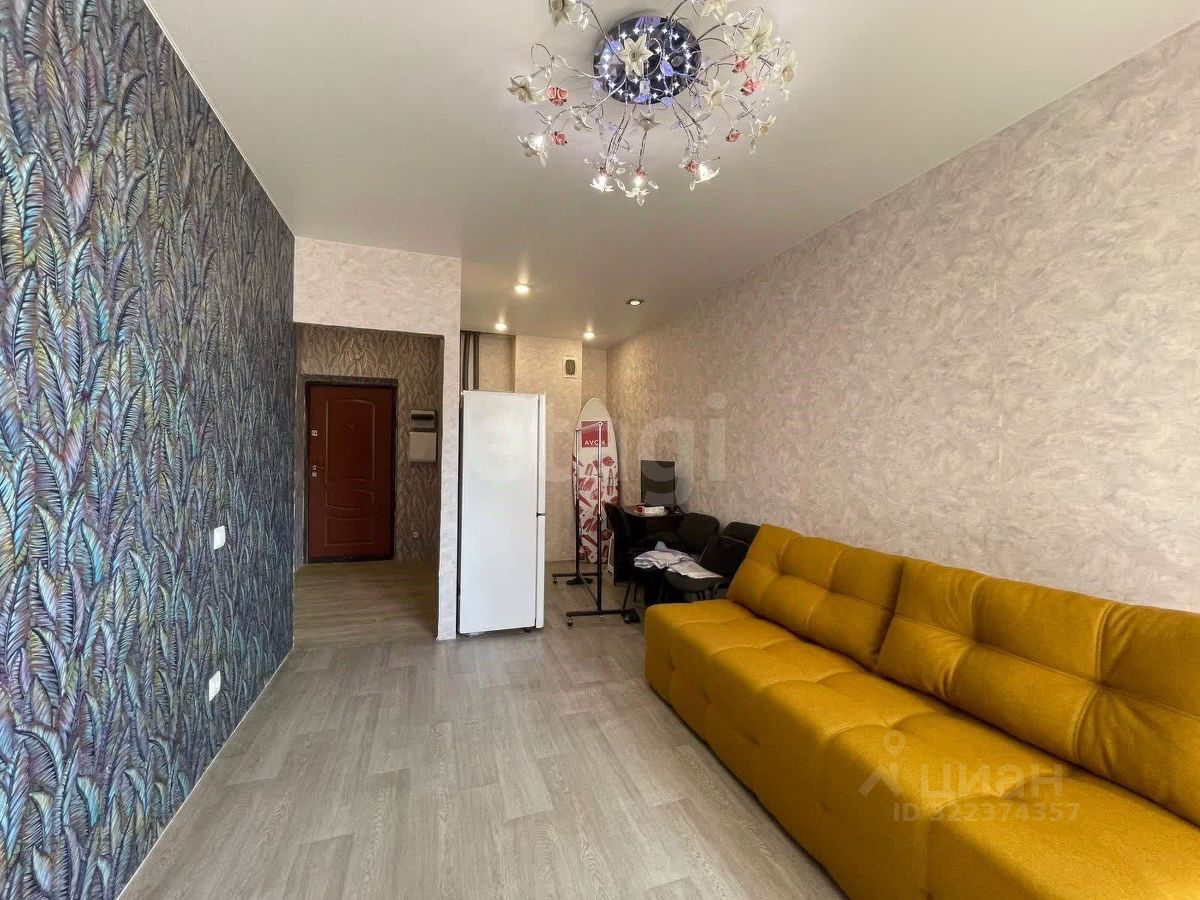 Продается комфортабельная студия площадью 23,5 кв. м на 5 этаже монолитно-кирпичного дома. Квартира дополнена остекленным балконом, что визуально расширяет пространство и увеличивает полезную площадь. В помещении выполнен качественный ремонт: санузел отделан кафелем, установлены натяжные потолки и уложен линолеум. Состояние отличное, для заселения потребуются лишь незначительные косметические доделки. В стоимость включена вся мебель и техника, представленная на фото: новый диван, шкаф и холодильник, что позволяет максимально упростить и ускорить переезд.