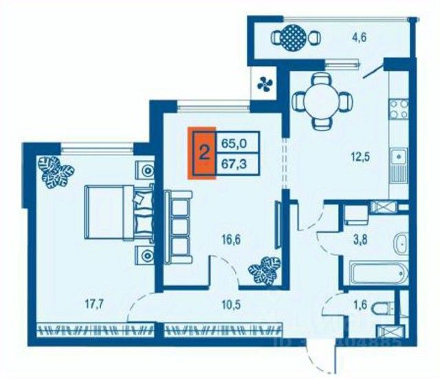 Двухкомнатная квартира в черновой отделке. Отличная возможность приобрести просторную квартиру для вашего индивидуального ремонта.