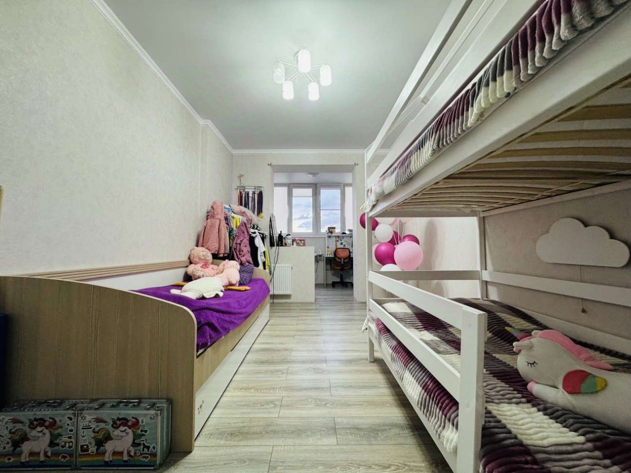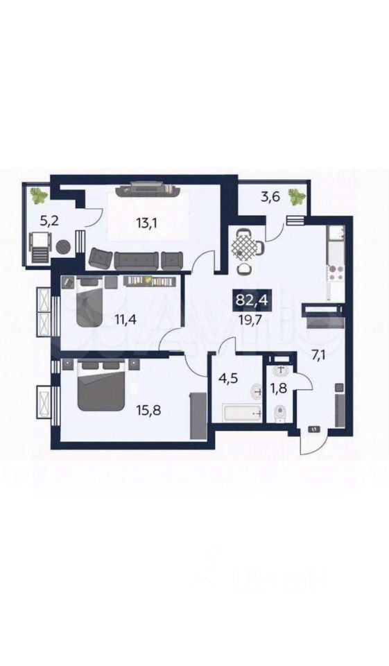 В квартире выполнен качественный ремонт, а так же она обладает оптимальной планировкой для трехкомнатной квартиры: просторный холл, кухня-гостиная, три спальни, а так же есть кладовая комната, в которой при желании можно смонтировать дополнительный сан.узел.
