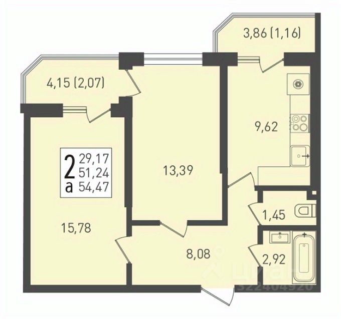 В продаже двухкомнатная квартира в предчистовой отделке.