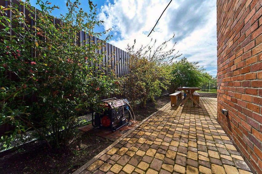 Участок огорожен забором: по фасаду кирпич, периметр - металлопрофиль, установлены распашные ворота и автоматические роллетные. Площадка под парковку и все дорожки к дому выложены тротуарной плиткой. Оборудована мангальная зона. На участке высажены черешня 3 дерева, вишня, яблоня 3 дерева, груша 2 дерева, слива, шелковица, инжир 2 куста синий и зеленый, гранат, виноград 12 кустов технических сортов, малина и ежевика.