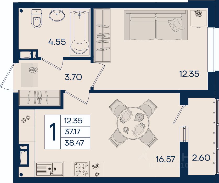 1 комнатная квартира 38.47 м² с ремонтом, на 6 этаже в жилом комплексе ''Дом 101''.