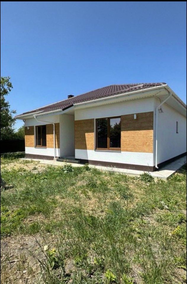 В ПРОДАЖЕ новый современный одноэтажный дом с террасой. Площадь земельного участка составляет 6 соток, участок ровный. Дом расположен в станице Гостагаевская в 18 км от Анапы. Хорошие видовые характеристики, много зелени. В доме выполнена предчистовая отделка, стяжка пола, электроразводка, натяжные потолки, стены оштукатурены, установлен электрокотел. В доме 3 спальни, кухня гостиная, прихожая, большой совмещенный санузел. Хорошая планировка. Выход на террасу. Все коммуникации подключены (электрокотёл, вода центральная, септик). Газ проходит по меже. Ремонт можно у застройщика за отдельную плату, срок выполнения 2-3 недели.