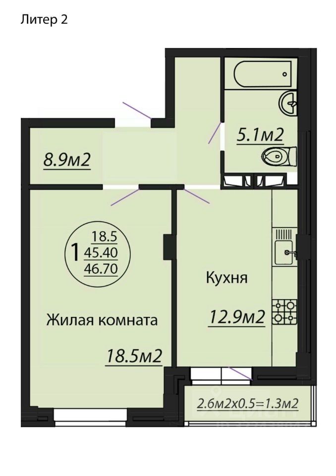 - общая площадь в выписке из ЕГРН 46.7 кв.м.