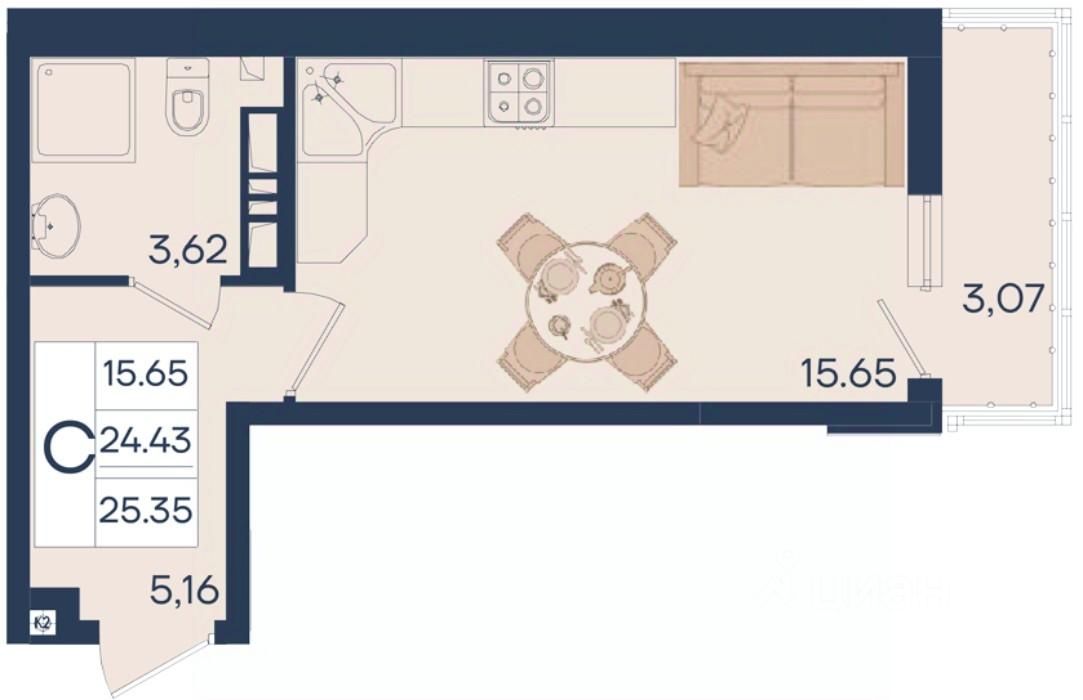 Студия 25.35 м², на 9 этаже в жилом комплексе ''Дом 101''.