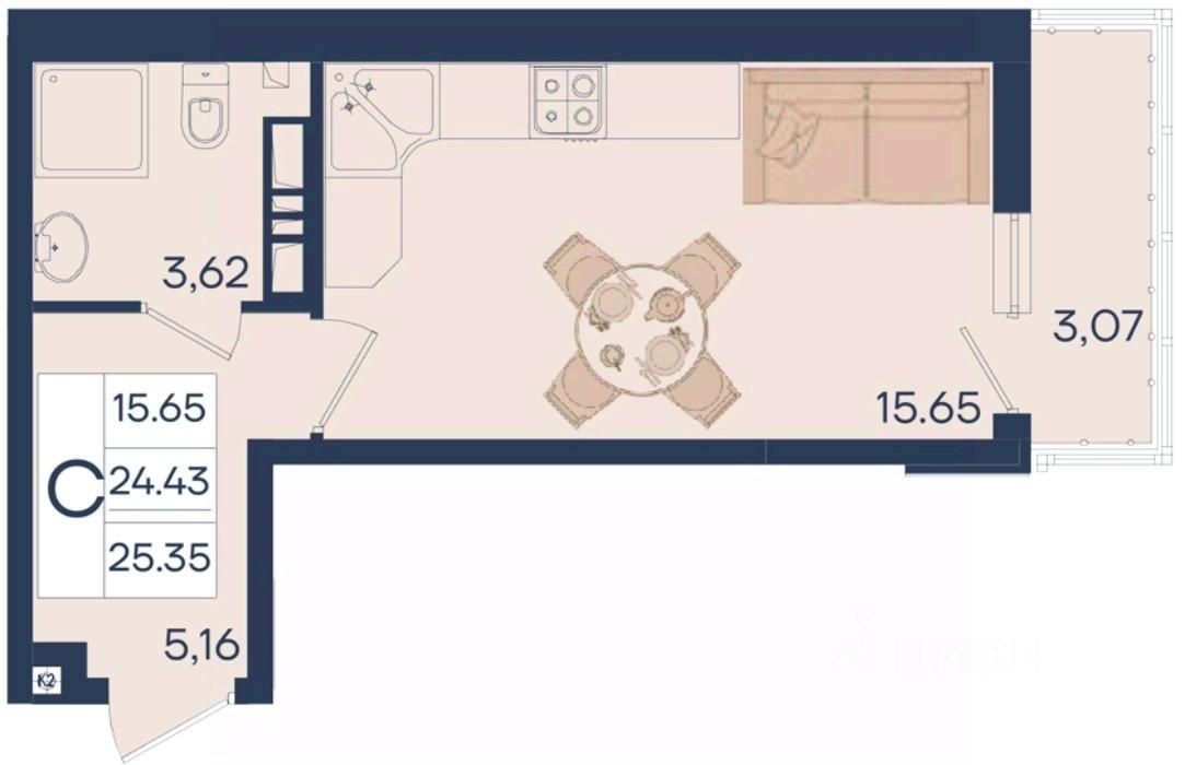 Студия 25.35 м², на 6 этаже в жилом комплексе ''Дом 101''.