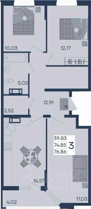 3 комнатная квартира с ремонтом 76.86 м², на 18 этаже в жилом комплексе ''Дом 101''.