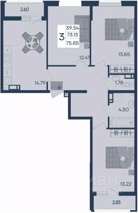 3 комнатная квартира с ремонтом 75.85 м², на 6 этаже в жилом комплексе ''Дом 101''.