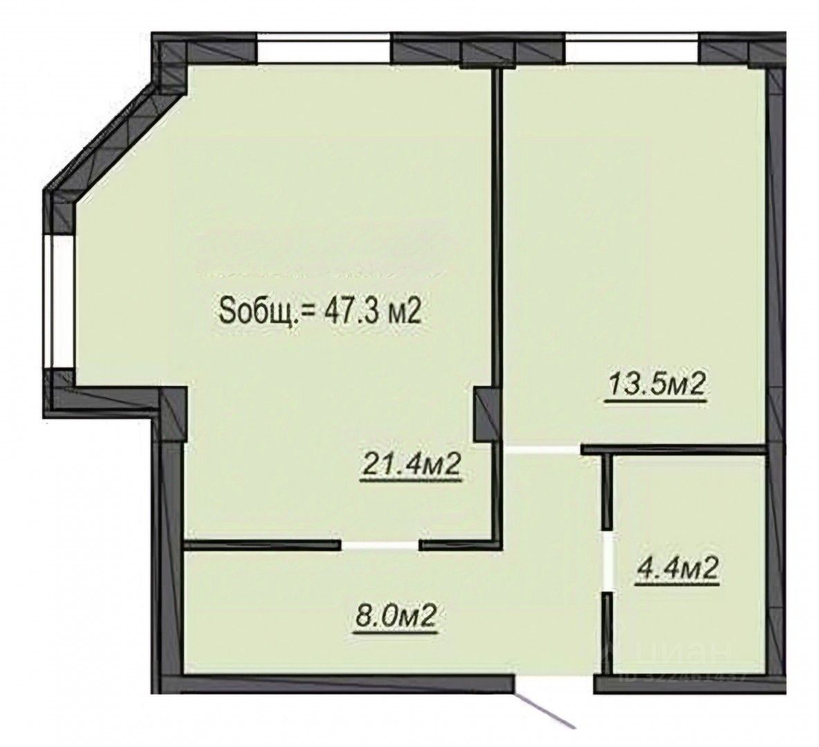 - общая площадь в выписке из ЕГРН 47.3 кв.м.
