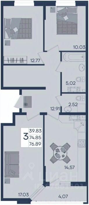 3 комнатная квартира с ремонтом 76.89 м², на 9 этаже в жилом комплексе ''Дом 101''.