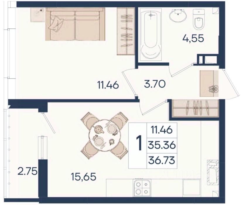 1 комнатная квартира с ремонтом 36.73 м², на 8 этаже в жилом комплексе ''Дом 101''.